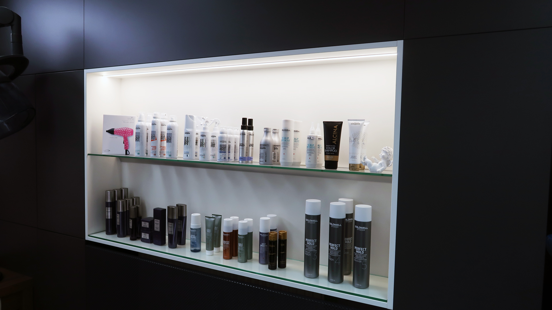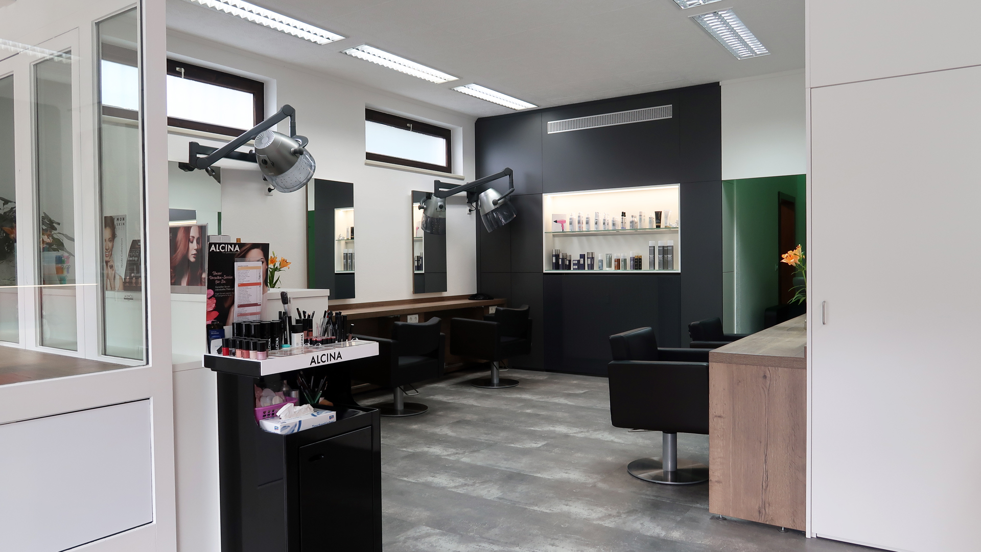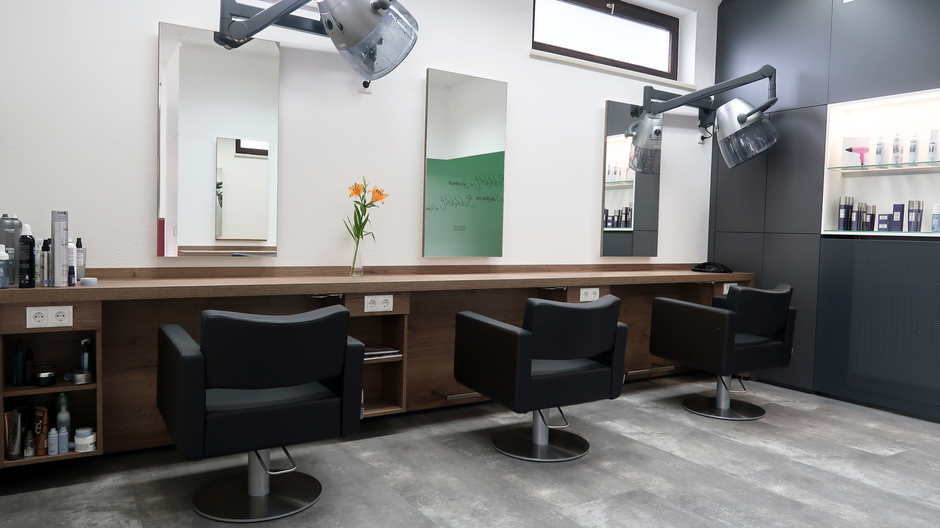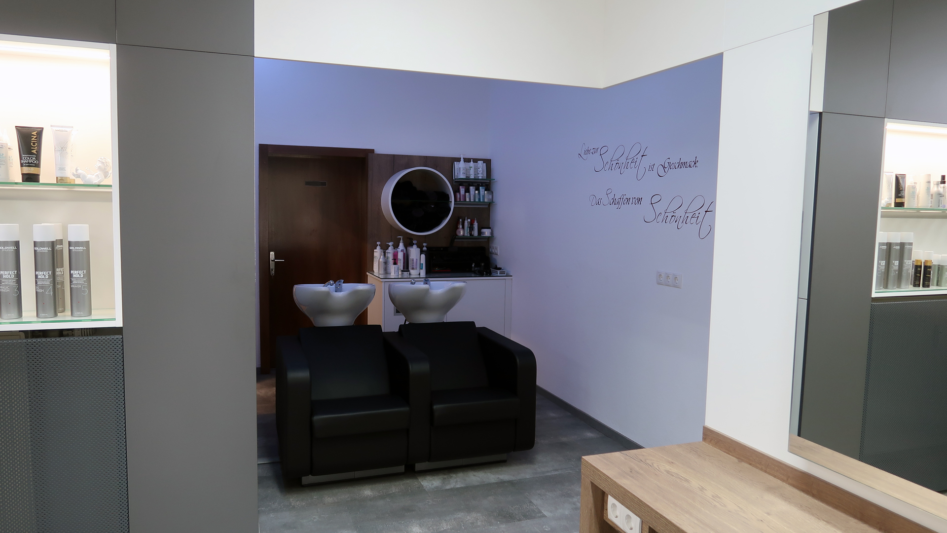Der Aufenthalt beim Frisör ist mehr als nur „die Haare schneiden“. Da eine Umgebung wichtig ist, in der man sich wohlfühlt, wurde bei der Planung des Salons ganz bewusst Wert auf „Wohlfühl-Atmosphäre“ gelegt.